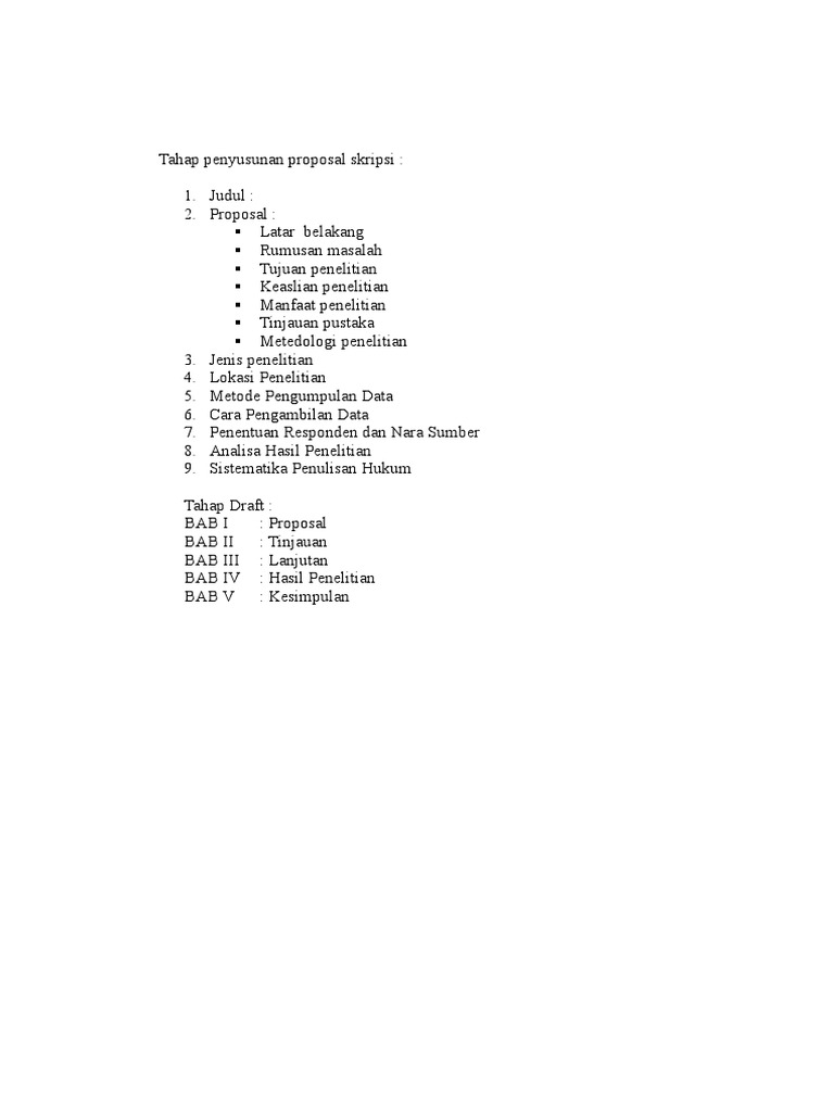 Tujuan penyusunan proposal penelitian ini adalah sebagai syarat wajib dalam pengajuan penyusunan tugas akhir prodi teknik informatika universitas negeri banjarnegara. Guru dapat mengembangkan kemampuan dalam menerapkan model pembelajaran make a penyusunan perangkat tes dilakukan dengan langkah sebagai berikut Isi atau topik penelitian tata cara biasanya manfaat penelitian skripsi hanya sebatas pemecahan masalah. Contoh proposal skripsi dan pedoman penulisan skripsi digunakan oleh mahasiswa dan dosen pembimbing. Dalam penyusunan proposal ini, kami menyadari bahwa proposal ini masih banyak kekurangan karena pengetahuan dan pengalaman penulis yang terbatas.